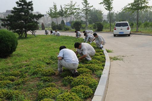 會(huì)后,一場黨員帶頭、員工共同參與的集體除草活動(dòng)熱火朝天地開展起來。大家有的用手拔、用的用鐮刀割、有的用袋裝、用的用車推,忙的不亦樂乎??煺邘椭?,年輕者幫助年長者,大家一邊勞動(dòng),一邊互相問候,其樂融融。表面的雜草連根拔起,死角區(qū)域進(jìn)行了二次清除。烈日炎炎下,盡管很多人的臉上流下了晶瑩的汗滴,但他們依然在繼續(xù),沒有停歇。功夫不負(fù)有心人,經(jīng)過2個(gè)小時(shí)的辛勤勞動(dòng),責(zé)任區(qū)域內(nèi)的雜草、雜物被徹底清除。當(dāng)大家回望整潔有序的草坪時(shí),心中無比喜悅。