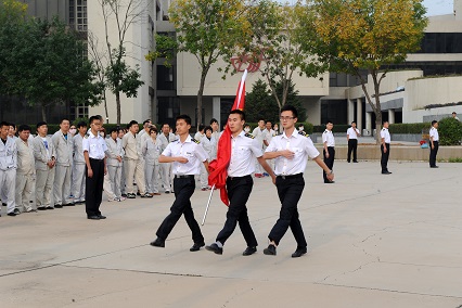 雖然在學校參加了大大小小的升旗儀式也有一年之久了,經(jīng)驗也算比較豐富的了,但是在航星集團,在這么多員工面前升旗我還是第一次。這不僅僅是一次升旗,這還是向集團的員工們展示我們的機會,我們來到這里,一舉一動都代表著學校的形象,再加上上屆學長的表現(xiàn)非常出色,這讓我感覺到無比的壓力。所以在得到升旗任務(wù)的時候我們就開始準備了,經(jīng)過幾次的篩選,選出了包括我在內(nèi)的幾個護旗手,他們都是方隊出身,隊列動作過硬,是護旗手的不二人選。再有就是升旗的隊形排列,之前的學長設(shè)計得非常好,但是我們想有所創(chuàng)新,在我們幾個負責人的精心設(shè)計之下,我們又設(shè)計出了一個屬于我們自己的隊形。之后就是無數(shù)次的演練,每個環(huán)節(jié),從入場,旗手交接旗,升旗,揚旗,都經(jīng)過了研究和排練。