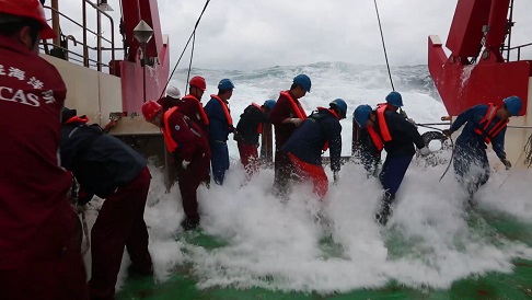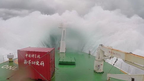 在船上的54天里,我們布放了14套潛標(biāo),回收了11套潛標(biāo),累計(jì)布放803件,回收了294件,其中也包括我們所生產(chǎn)的ADCP。雖然我主要負(fù)責(zé)我們的設(shè)備,但也負(fù)責(zé)了所有的潛標(biāo)布放,而在布放的過(guò)程中,最常見(jiàn)的天氣就是高溫炎熱,因?yàn)榇耙恢痹诔嗟栏浇鳂I(yè),所以船甲板溫度在40度以上,我們常常頂著毒辣的太陽(yáng)在甲板上布放,也讓布放增加了難度,而還有個(gè)自然因素就是以迅雷不及掩耳之勢(shì)襲來(lái)的暴雨,我們經(jīng)常在暴雨中連續(xù)作業(yè),全身都濕透了,也只能頂著暴雨堅(jiān)守戰(zhàn)地。而值得一提的是當(dāng)大風(fēng)以20m/s速度襲來(lái)時(shí),浪花直接拍到了6層駕駛室的玻璃上,仿佛將要把我們吞沒(méi),此時(shí)看著浩瀚無(wú)邊的海洋,一道道波浪不斷涌來(lái),撞擊在船體上,發(fā)出天崩地裂的吼聲,噴濺著雪白的泡沫。是那樣的壯觀。當(dāng)一切都回歸平靜的時(shí)候,又是那樣的云淡風(fēng)輕。