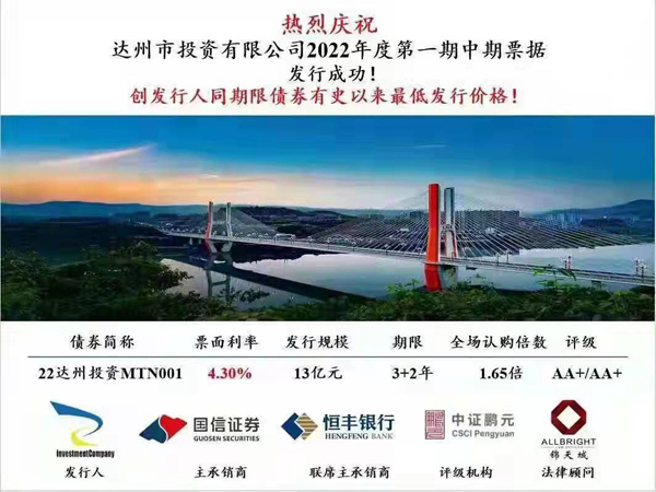 達(dá)州市投資有限公司實(shí)現(xiàn)融資開門紅