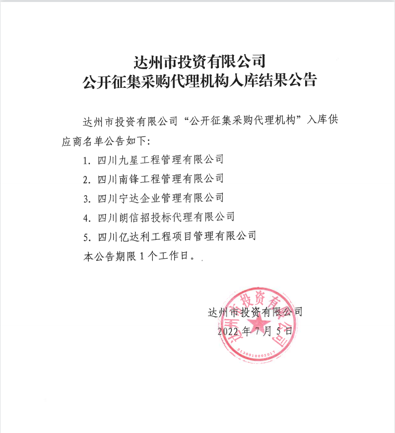 公開征集采購(gòu)代理機(jī)構(gòu)入庫(kù)結(jié)果公告